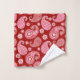 Toalha colocada em um padrão de ornamentado em forma de papel, em tons de rosa com carvão e branco sobre um fundo vermelho escuro da China
