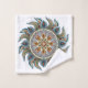 Uma pintura digital de mandala em blues, vermelhos e cremes