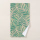 Folhas de palma verde tropical em design estésico de cor aquosa, com paleta de cor verde macia e sobre fundo de rosa claro.