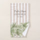 Apresentando nosso conjunto de toalhas de beige Stripes de praia em Palmeiras tropicais. Com ilustração aquosa de plantas tropicais com listras beges como fundo. Adequado para casa de praia de férias de aluguel, casa de chalé costeira, ou mesmo barco e navio.