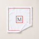 Bonito Papai Noel, flocos de neve e toalha de Natal vermelha monograma. A toalha do banheiro apresenta um grande Papai Noel no centro sobre fundo vermelho com bolinhas brancas, a toalha da mão um padrão de Papai Noel sobre fundo branco e as bordas vermelhas do pano de lavagem, seu monograma e os mesmos Papais noeis bonitos.