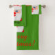 Papais noeis de Natal, toalha de banheiro. Papai Noel Festivo em um fundo verde. A toalha de banho tem a seguinte redação: "Esta é a estação, Feliz Natal em texto vermelho. A toalha de mão tem a redação, Ho! Ho! Em teste preto. O pano de Washington fechou o velho Santo Nick com seu chapéu vermelho e branco, olhos azuis, nariz vermelho e bochechas rosadas. Segure uma haste de toalha do banheiro para mostrar, arranjando a toalha grande do banho, a toalha de mão colocada no meio, com o topo do pano de lavagem. Diferentemente da janela de pré-visualização do item, talvez seja necessário dobrar os lados esquerdo e direito da toalha de banho, e a toalha de mão para um ajustado decorativo em camadas mais adorável na haste com o pano de lavagem repousando sobre o plano totalmente colocado. São três peças legais para a comemoração do inverno e do Natal. Arte Original © 2015 TamiraZDesines.