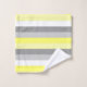 Toalha de banho em tiras amarela, branca e Cinza Colada com tonéis alegres de cor amarela, cinzentos muda e decor de banho listrado branco. Por celeste@khoncepts.com