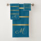 Douradas faixas com fundo azul turquesa. Monograma personalizável.