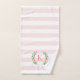 Este design de moda divertida apresenta um fundo branco, cor-de-rosa e listrado, com uma coroa floral colorida. Personalize o design com seu nome e monograma ou outro texto. Use as ferramentas de design para escolher qualquer cor de fundo, editar as fontes de texto e as cores ou carregar suas próprias fotos para criar um conjunto personalizado exclusivo de toalhas de banho que corresponda a qualquer decoração do banheiro. O conjunto inclui uma toalha de banho coordenadora, toalha de mão e pano de lavagem ou, se necessário, toalhas individuais.