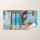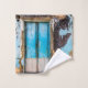 Enquanto caminhava pelas ruas nas pequenas aldeias das ilhas Cabo Verde, fiquei impressionado com a incrível mistura de cores, texturas e materiais que oferece belas oportunidades para fotografias urbanas. Nesta imagem: parede azul, bege e marrom e uma porta azul.