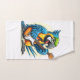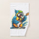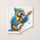 Um papagaio colorido, que ama e toca rock, com energia criativa excelente.