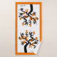 Árvore de cereja da sakura preta com pássaros apaixonados, flores de laranja e toalha de banho na fronteira. Ele apresenta uma sakura preta com flores laranja com corações pretos no centro e um par de aves adoráveis. Seu nome é escrito em uma fonte de estilo de script.