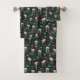 Esta elegante toalha de banho de padrão de pássaros flamingo e o washcloth têm um design original feito no estilo Art Deco dos anos 20. Os flamingos cor-de-rosa claro repousam sobre um fundo que inclui frentes de névoa em cores ousadas e formas retangulares geométricas em tons de verde-verde-azul-turquesa, todos em um pano de fundo de preto. Esse design bonito e estilizado é perfeito para quem ama esses animais tropicais e busca um padrão elegante com uma retro 1920.