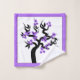 Árvore de cereja da sakura preta com pássaros apaixonados, flores roxas e toalha de banho na fronteira. Ele apresenta uma sakura preta com flores roxas com corações pretos no centro e um par de aves amadoras. Seu nome é escrito em uma fonte de estilo de script.
