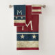 Estas toalhas de banheiro apresentam uma angustiada design de bandeira americana. Perfeito para uma casa rústica.