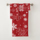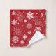 Ilustração de texto de paz e alegria com decoração de flocos de neve brancos em fundo vermelho