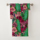 Padrão desenhado à mão com pavões e vários rosas sobre fundo escuro