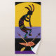 Penas e Arrows Kokopelli no sudoeste. Alienígenas ou penas de forma viva e toalhas de Kokopelli. Abstrato do Estilo Americano do Sudoeste Nativo tocando flauta Caverna Petroglicphs. Boa sorte para o banheiro. Kokopelli é uma divindade da fertilidade, um flautista jubilado, culturas nativas americanas. Atribuído a aliens antigos ou arte tribal e inspirado em desenhos de cavernas e rochas. A ideia de presente de excelente para aqueles que amam o sudoeste temiam a decoração domiciliar, e a história antiga do planeta.