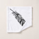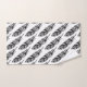Padrão de penas tribais preto no estilo moderno, intricadamente padronizado, sobre um fundo branco nítido. A toalha da mão apresenta uma grande pena solteiro.