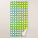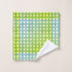 Um padrão geométrico com um design repetente cobrir todo o espaço, com uma mistura de elementos florais e semelhantes a favos. Vários tons de verde, branco e azul criam uma vibração divertida ao padrão.