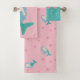 Esse conjunto de toalhas de banho, especialmente projetado para bebês, apresenta uma pequena sereia e estrelas-do-mar bonitinhas em cores pastéis, em fundo rosa. Esta design fofa é perfeita como presente para uma menina. Em toalha à mão você pode personalizar o texto com o nome do seu bebê.
