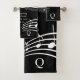 Elegante preto Elogia as toalhas de banho do Senhor Cristão, desenhadas com notas musicais. Há um texto personalizável que diz DEIXE TUDO O QUE TEM BREATH PRAISE O SENHOR, que é baseado no Salm 150 e que você pode personalizar para atender às suas necessidades. No canto inferior direito, há um MONOGRAM personalizável. Disponível em outras cores e com itens correspondentes.