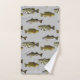 A toalha de banho perfeita para o homem que ama pescar ou para o trailer, a cabana ou a cabana de pesca. O disco apresenta um padrão de baixo-boca, morena e baixo-grande-boca. A cor da toalha pode ser personalizada.