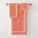 Modern Towel Set Peach Parfait com White Border Belo conjunto para seu banho convidado em cores ricas com canalização branca. As cores incluem Cacau Quente, Marigold à meia-noite, Creme de Morango, azul pastel, chalé rica, joia de menta, grenadina....ou personalize para sua própria cor.