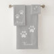 Colar as patas e o texto de nome editável no Conjunto de Toalhas da Banheira da cinza-clara. Design para amantes de animais de estimação!