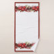 O conjunto bonito de toalhas de Natal também está disponível na cortina do chá e no tapete de banho correspondente. Criado com uma bela garland constituída por maçãs vermelhas brilhantes, cones de pínus, folhas sagradas e morangos vermelhos.