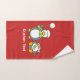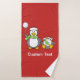 Um pequeno desenho animado de pinguim com bola de neve e um desmaiado. Vestindo lenços verdes e chapéus de Santa.