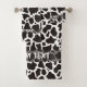 Padrão de fundo de vaca sem costura, preto e branco. Texto personalizado.