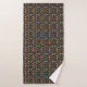 "Dark-themed towel set and washcloth with a playful space design featuring colorful planets, rockets, and stars. The vibrant pattern adds a whimsical touch."