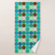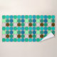 Toalha colocada num impressão geométrico moderno do século Médio de pontos gigantes, numa grelha de nove cores de coordenação - tons de turquesa, pavão, verde-mar, menta, castanho de chocolate e esbranquiçado, sobre fundo de cinza de pedra/escarpa