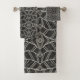 Conjunto de Toalhas de Bath de Três amenidades de banheiro e acessório de decoração com pontos de superfície cinza-ondulados diagonais, patenteados na imagem de design de arte preta de fundo, por http://thefabricseal.zazzle.com cinzas de aparência Legal, cinzas, bege-bravo esplêndido e pontilhado em linhagens lineares em um mosaico de ossos heríndios, como se repetisse em um fundo preto de carvão de carvão ebonado.