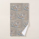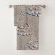 Este conjunto de toalhas apresenta uma espiral formada a partir de rochas numa praia de Connecticut.