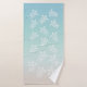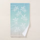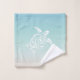 Este conjunto mínimo de toalhas costeiras apresenta tartarugas tribais brancas sobre um fundo de gradiente linear abstrato em tons azuis/bege e turquesa. O fundo lembra uma praia e o oceano. Personalize com seu monograma.