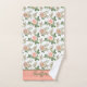 Um lindo conjunto de toalhas de banho florais rosa. Monogramize cada produto com seu sobrenome ou primeiro nome. Estes fazem ótimos presentes para chuveiros de noiva ou qualquer outra ocasião.
