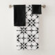 Padrão geométrico na moda preto e branco moderno com formas decorativas com uma simetria bonito. Atualize o seu banheiro com um padrão gráfico moderno. Toalha de banho gráfica e pano de lavagem preto sólido e toalha de mão.