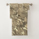 Conjunto de toalha de ouro, cinza e preto.