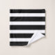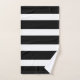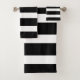Conjunto de toalhas de banheiro preto e branco listrado.