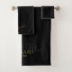 Com tipografia moderna e elegante, este conjunto de toalhas chic preto-e-ouro pode ser personalizado com seu nome e data especial. Projetado por Thisnotme©