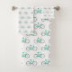 Um conjunto esportivo de toalhas com bicicletas verdes legal. Adicione uma cor ao fundo se o branco não estiver ao seu gosto.