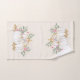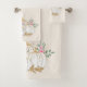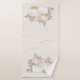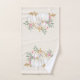 Conjunto de toalhas com bombeiros brancos de cor d'água de rico com acentos de brilho dourado falso. Cercados por folhas verdes e flores rosas selvagens.