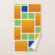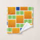 Combinações de cores quadradas de quadrados de quadrados laranja amarelo ouro, verde limão e quadrados de cor azul nos azulejos.
