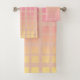 Painéis da janela da toalha. Vidraças macias de vidro como janelas em matizes que vão desde amarelo-buttercopo até laranjas pastéis, até corais macios apoiados em pincel mudo.