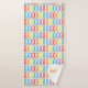 Rainbow Bunny Pattern Kids Monograma De Banheiro. Washington tem uma faixa de coelhos arco-íris de dois lados. A toalha de mão tem um coelho roxo grande e azul sobre fundo branco. A toalha do corpo tem um padrão de coelhos arco-íris com monograma inicial e nome. Padrão animal divertido.www.SamAnnDesigns.com