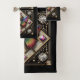 Wrap your bathroom in timeless glamour with this black, gold, and white Art Deco towel set, beautifully infused with Art Nouveau elegance and a soft, feminine touch. Featuring a radiant rainbow butterfly adorned with faux glitter accents, this design blends graceful, flowing lines with bold geometric structure for a look that feels both vintage-inspired and refreshingly modern. The butterfly’s shimmering colors and jewel-like sparkle create a dreamy focal point, while the luxe black-and-gold palette adds depth, drama, and sophistication.