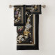 Wrap your bathroom in timeless glamour with this black, gold, and white Art Deco towel set, beautifully infused with Art Nouveau elegance and a soft, feminine touch. Featuring a radiant rainbow butterfly adorned with faux glitter accents, this design blends graceful, flowing lines with bold geometric structure for a look that feels both vintage-inspired and refreshingly modern. The butterfly’s shimmering colors and jewel-like sparkle create a dreamy focal point, while the luxe black-and-gold palette adds depth, drama, and sophistication.