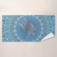 Traga as vibrações tropicais para o seu banheiro com a toalha de banho "Silver Turtle Radiance". Esta design de inspiração marítima apresenta uma tartaruga tribal prateada no centro de uma mandala prateada moderna contra um fundo azul. As cores azul e prateada criam uma sensação náutica e costeira, enquanto a design artística adiciona um toque de elegância moderna ao seu espaço. Experimente o oceano e a praia no seu próprio banheiro com estas toalhas únicas.