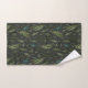 Linda toalha de banheiro com padrão de árvores de inverno rústico com galhos de pinheiro aquoso. Visite nosso compro para ver uma cortina de chá correspondente.
