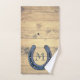 Decorre o seu rancho de cavalo ou o banheiro de terraplenagem ocidental com esta toalha de banho rústica. Adicione uma sensação quente de campo com este conjunto de tábuas de madeira. O sapato de cavalo de aço azul realmente as separa do resto! Personalize a letra do monograma para um toque especial extra.
