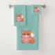 Conjunto De Toalhas Raposa e Monograma Cuxos em Azul Claro
