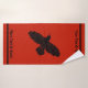 Uma simples silhueta preta de um Raven (Corvus corax) sobre fundo vermelho. A imagem raspada recebeu um ligeiro efeito "áspero" ou "vestido". Há dois lugares para você adicionar seu próprio texto. Você pode escolher outra cor de fundo.